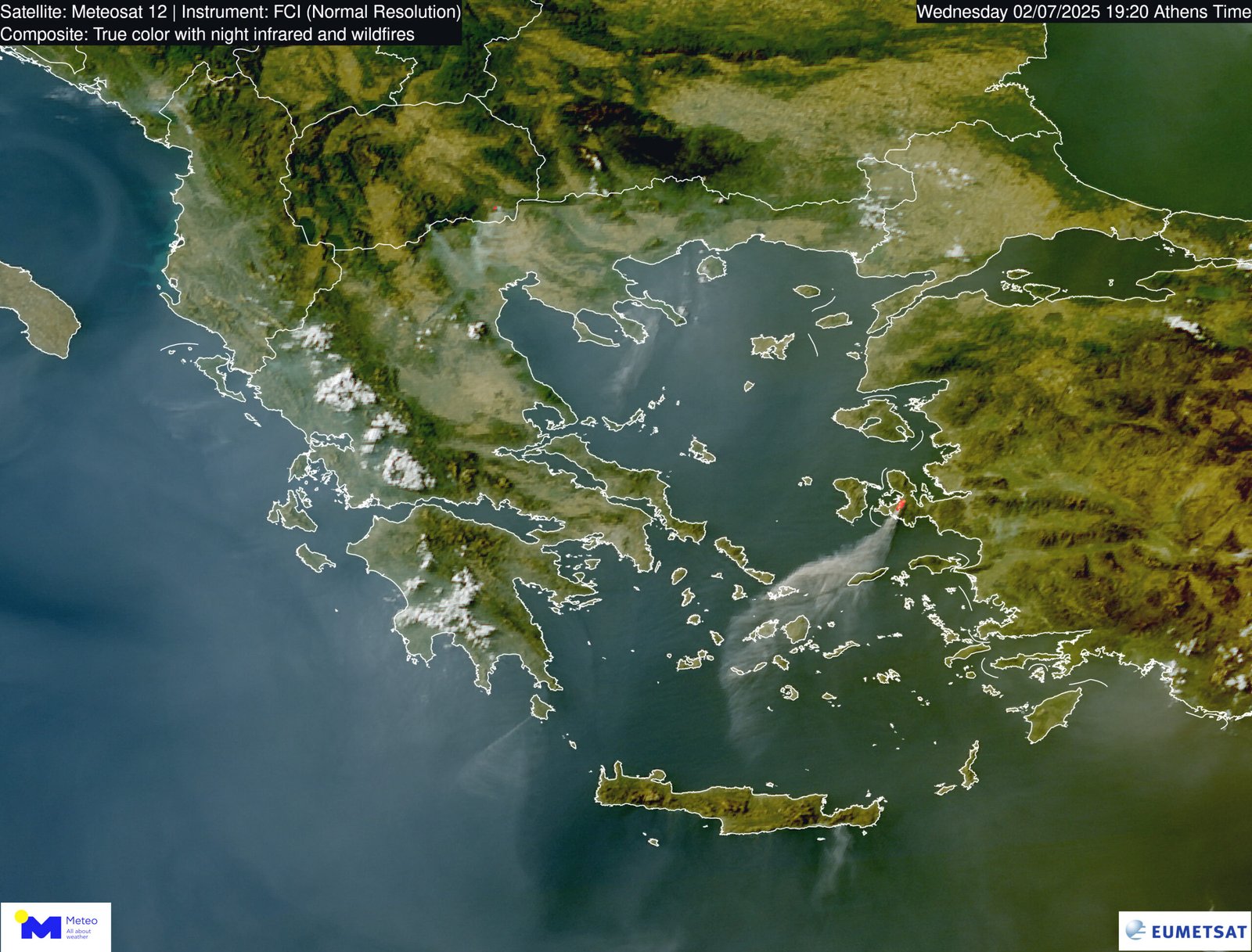 Στις 2 Ιουλίου 2025, ξέσπασε μεγάλη πυρκαγιά στην Ανατολική Κρήτη (περιοχή Αχλιάς Λασιθίου), η οποία εξαπλώθηκε γρήγορα και οδήγησε σε εκκενώσεις οικισμών και εκτεταμένη κινητοποίηση πυροσβεστικών δυνάμεων και εναέριων μέσων . Προς το τέλος του μήνα, στις 26–27 Ιουλίου, πολλαπλά μεγάλα μέτωπα σε περιοχές όπως η Αττική, η Εύβοια, τα Κύθηρα, η Μεσσηνία και τα Χανιά προκάλεσαν εκτεταμένες καταστροφές, με συνολικές καμένες εκτάσεις που ξεπέρασαν τις 55.000 στρέμματα μέσα σε λίγες ημέρες, σύμφωνα με στοιχεία δορυφορικής καταγραφής . Σε αρκετές περιπτώσεις, οι φωτιές έφτασαν κοντά σε κατοικημένες περιοχές, οδηγώντας σε προληπτικές εκκενώσεις και αποστολή μηνυμάτων 112 .
