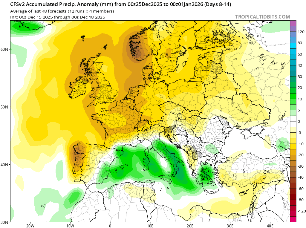Στη συνέχεια, μπαίνοντας στη νέα εβδομάδα, αυτή των Χριστουγέννων, ο καιρός φαίνεται πως θα εξακολουθεί να θυμίζει προχωρημένο φθινόπωρο, καθώς θα συνεχίζεται το άστατο σκηνικό, ειδικά για την περιοχή του Αιγαίου αλλά και τα κεντρικά και ανατολικά ηπειρωτικά. Σύντομα τα φαινόμενα θα γενικευτούν, οι όποιες χιονοπτώσεις ίσως παρατηρούνται πλέον και σε λίγο χαμηλότερα υψόμετρα (22-23/12) και έτσι φαίνεται πως ο φθινοπωρινός -με δόση χειμώνα- καιρός θα μας συντροφεύει μέχρι και την ημέρα των Χριστουγέννων.